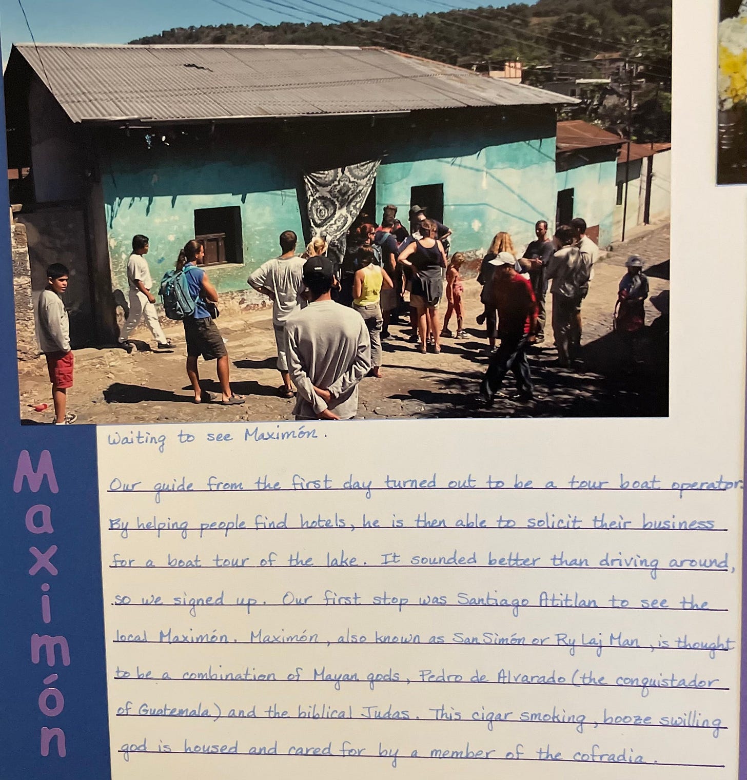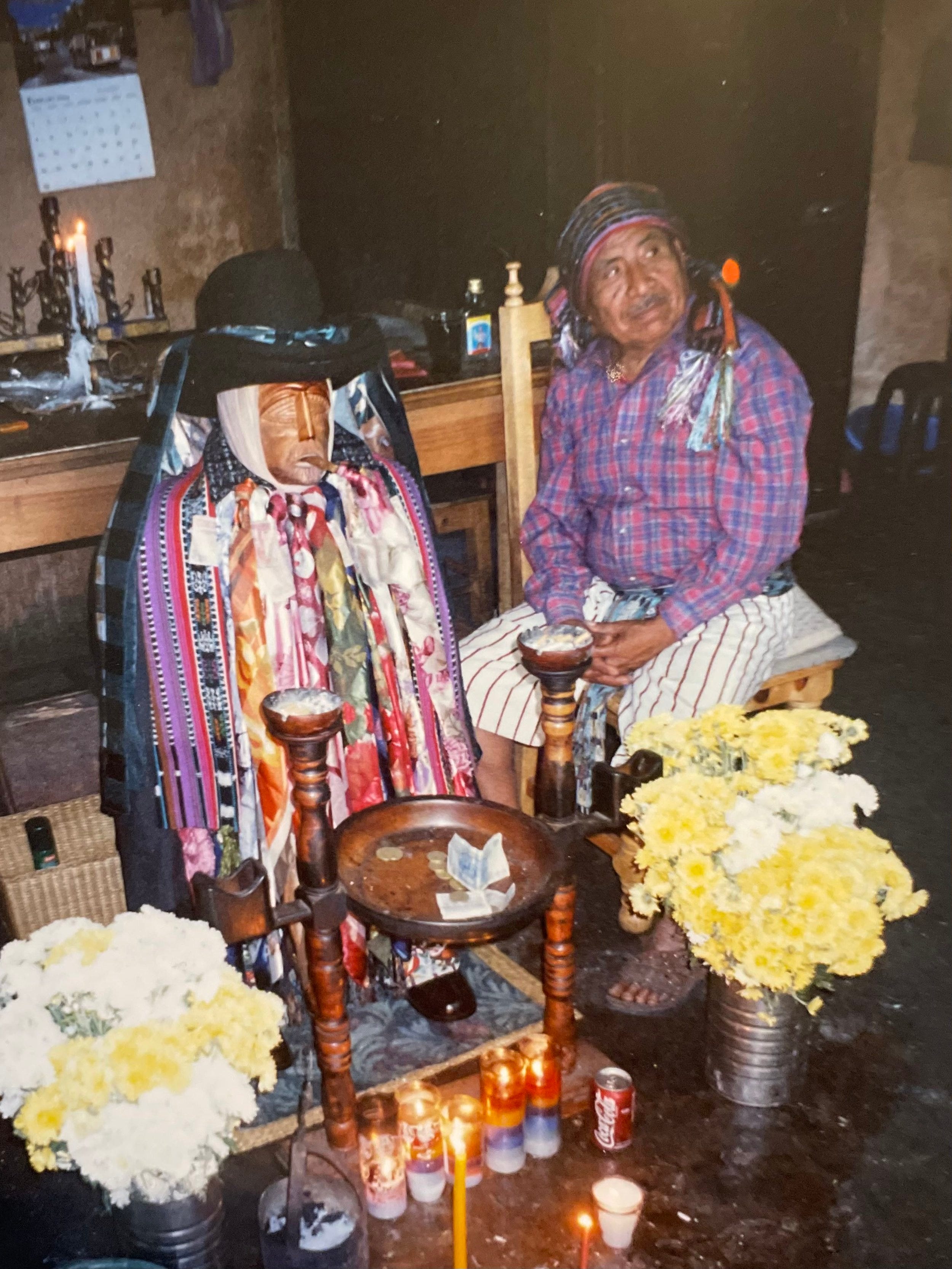 We were told by our guide that really Maximon is mostly for the tourists these days, but someone else told us that the people go to church during the day, but at night they come to ask favors of Maximon. The figure of Maximon, carved out of wood and theoretically 2000 years old, is set up in a private home. This rotates on a yearly basis, Maximon changing houses during Semana Santa, the Holy Week leading up to Easter. The man of the household is the head of the religious council during that year. He doesn’t work. His job is to sit with Maximon and receive offerings.