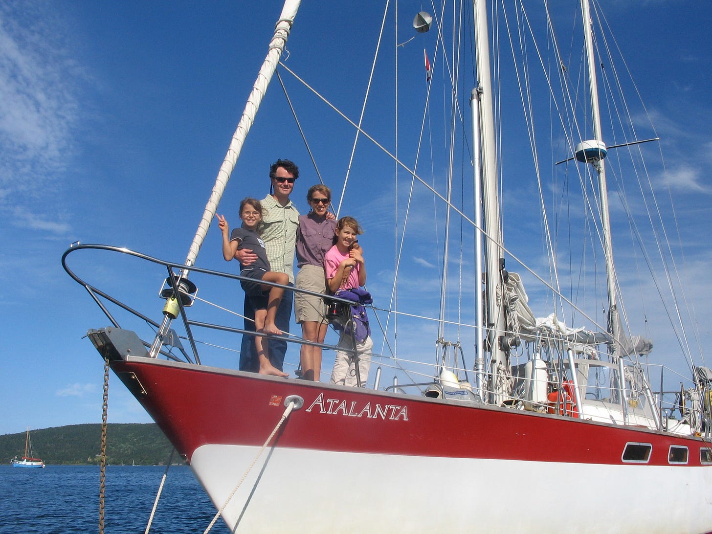 Back in the day, the Harvey family—parents Michael and Ginny, plus daughters Vienna (7) and Rhiannon (5)—spent four years living aboard the good ship Atalanta, a 43-foot Wauquiez Amphitrite ketch.